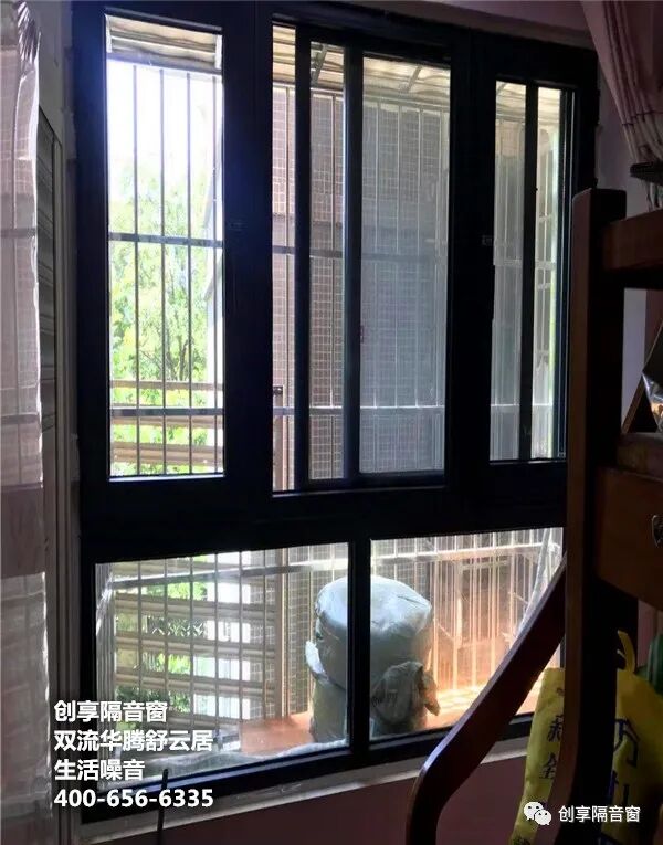 雙流華騰舒云居位于東升航都大街二段868號(hào),雙流華騰舒云居的客戶(hù)選擇在臥室原窗內(nèi)側(cè)加裝創(chuàng)享隔音窗,主要噪音為生活噪音,安裝后效果為36分貝左右。