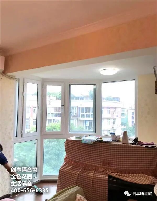 金色花園位于迎賓大道路10,金色花園的客戶(hù)選擇在臥室原窗內(nèi)側(cè)加裝創(chuàng)享隔音窗,主要噪音為生活噪音,安裝后效果為33分貝左右。