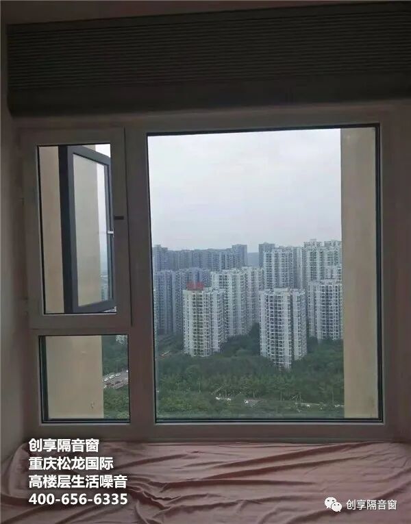 重慶松龍國(guó)際位于民心路附近,松龍國(guó)際的客戶(hù)選擇在臥室原窗內(nèi)側(cè)加裝創(chuàng)享隔音窗,主要噪音為高樓層生活噪音,安裝后效果為35分貝左右。