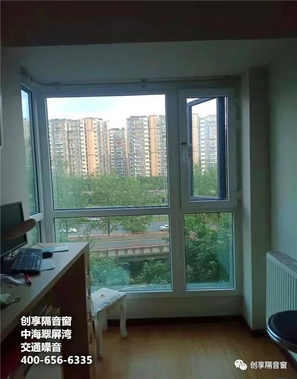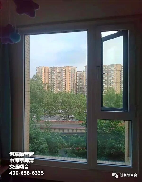 中海翠屏灣位于泰和二街333號,中海翠屏灣的客戶選擇在臥室原窗內(nèi)側(cè)加裝創(chuàng)享隔音窗,主要噪音為34分貝左右。