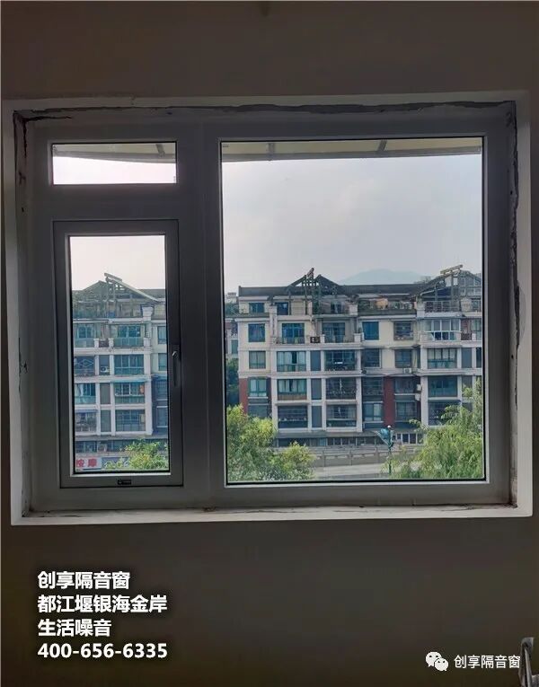都江堰銀海金岸位于天府大道49號,都江堰銀海金岸的客戶選擇在臥室原窗內(nèi)側(cè)加裝創(chuàng)享隔音窗,主要噪音為生活噪音,安裝后效果為34分貝左右。