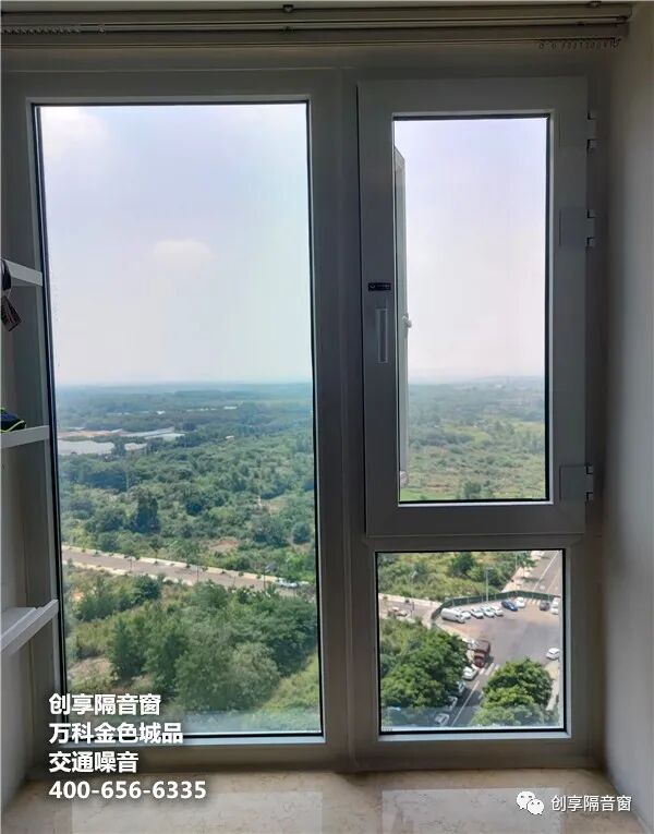 萬科金色城品位于金桂路600號,萬科金色城品的客戶選擇在臥室原窗內(nèi)側(cè)加裝創(chuàng)享隔音窗,主要噪音為交通噪音,安裝后效果為33分貝左右。