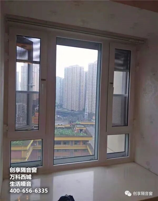 萬科西城位于石坪橋盤龍正街中段,萬科西城的客戶選擇在臥室原窗內(nèi)側(cè)加裝創(chuàng)享隔音窗,主要噪音為生活噪音,安裝后效果為34分貝左右。